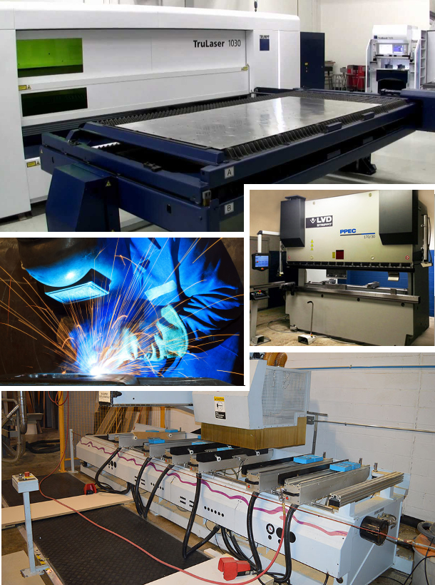 Our facilities are furnished with the equipment, such as a laser cutter, CNC workstation with double router and paint booth for factory finishing to manufacture anything from stainless steel custom cook centers to unique wooden furniture and store fixtures.